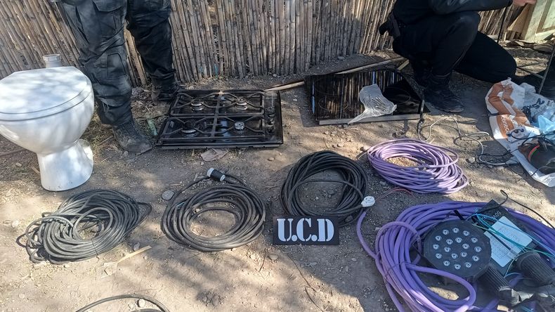Un monitor LED, anafes, microondas, vajilla, taladro, bidet, inodoro, toallas, zapatillas, acolchado, campera, ropa, tachos de pintura y herramientas de mano entre otros objetos fueron los que se encontraron. También se secuestró un arma réplica de 9 mm a aire comprimido.