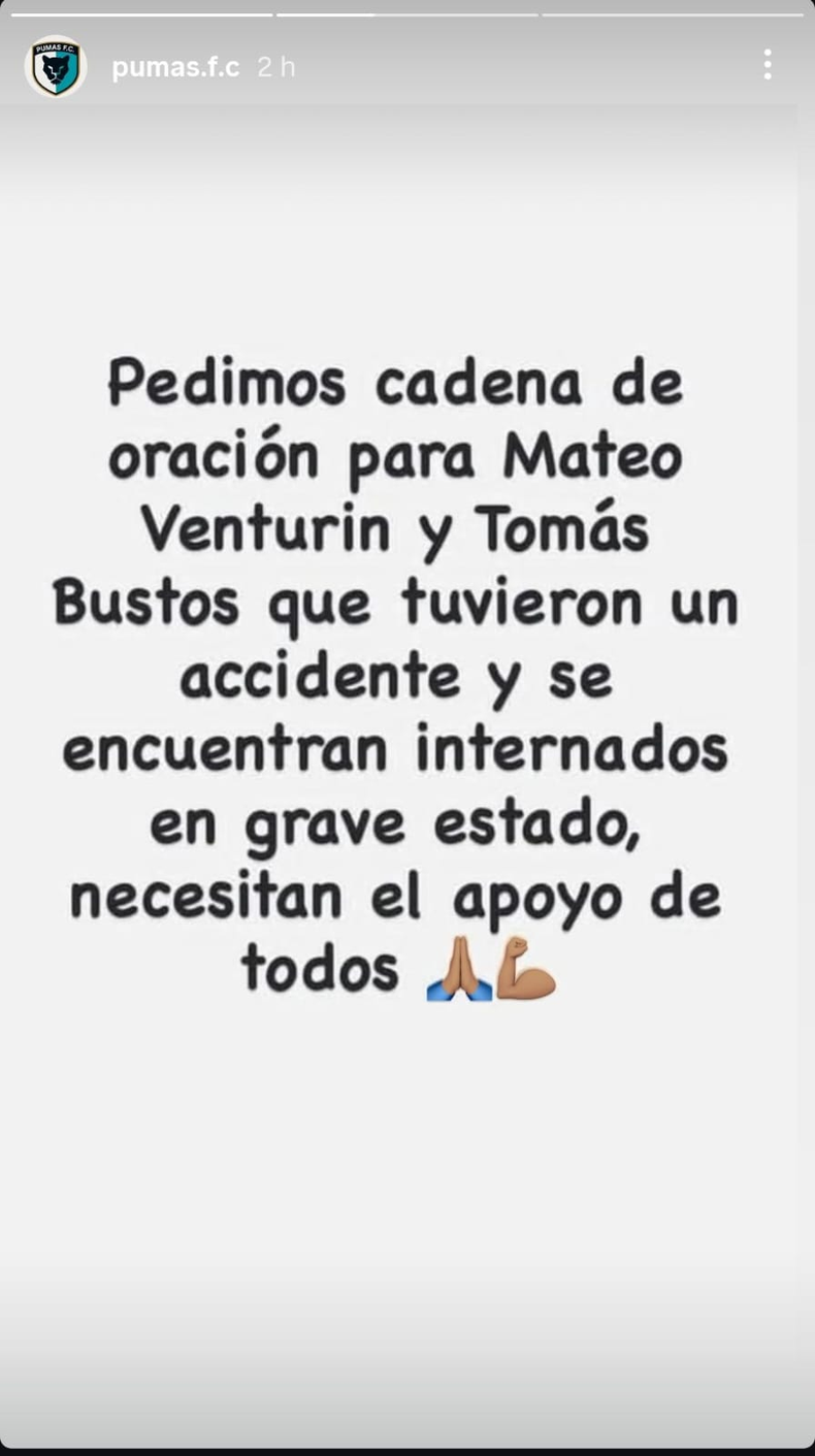 Luego de protagonizar una violenta caída, mientras se desplazaban en una moto, dos deportistas sanjuaninos terminaron internados y ahora luchan por su vida. Se trata de Tomás Bustos, jugador de futsal de Pumas, y de Mateo Venturin, un rugbier sanjuanino, quienes permanecen en el Hospital Rawson con estado reservado. Por esa razón, sus familias, preocupadas por la situación crítica, solicitaron el apoyo a la comunidad.