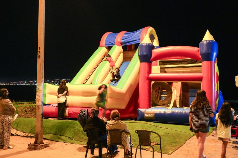 No obstante, también hay diversión para los más pequeños que aprovechan los juegos inflables instalados en distintos puntos de la avenida hasta altas horas de la noche.