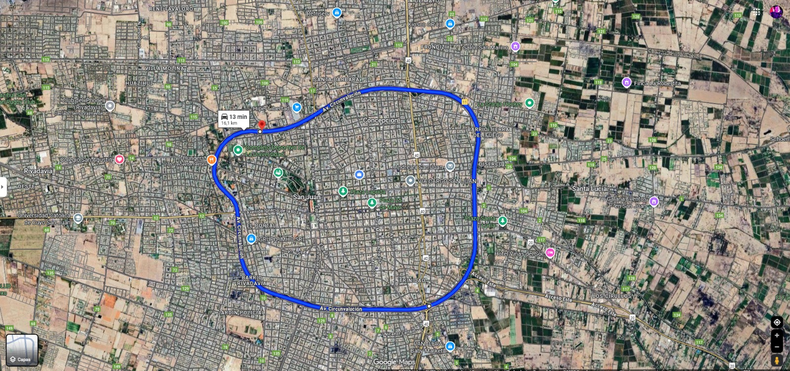 Para tener una idea, el mapeo digital marca 13 minutos de demora (es decir, 4 minutos menos), para dar una vuelta completa a la Avenida de Circunvalación que, si bien permite una velocidad más elevada (de hasta 100 km/h), tiene una extensión total de 16 km, más del triple que la arteria.