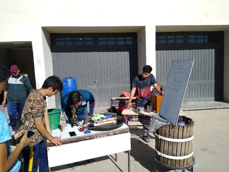En ese contexto, Arguello presentó la renuncia y se fue a dictar clases de prácticas profesionalizantes a la Agrotécnica de Rodeo, donde hicieron un primer vino. “Lo hicimos en tambores plásticos, sin laboratorio donde analizar, sin insumos, fue un desastre. Entonces el director, Miguel Díaz, me preguntó que necesitaba, e hice una lista que era imposible de comprar. Empecé a llamar a mucha gente para que ayudaran a la escuela y de inmediato tuvimos respuesta. Nos prestaron tachitos de acero inoxidable, y así otras personas aportaron una prensa, una despalilladora, entre otras cosas. Le pedimos a los directivos que nos dieran un espacio en el frigorífico que tiene el establecimiento e improvisamos una pequeña bodeguita”, agrega.