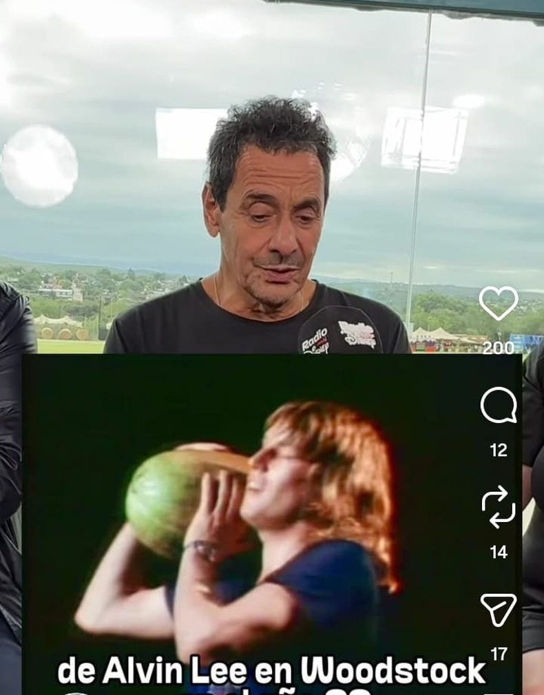 Mollo incluso recordó cómo nació todo. La escena quedó grabada en su memoria por una inesperada conexión histórica.“Aparece un día y le entrega la sandía a Diego. Lo veo ahí con la sandía y me acordé de Alvin Lee en Woodstock. Termina de tocar, levanta una sandía y se va con la sandía al hombro. Entonces fue como rememorar eso… Cosquín – Woodstock… y una sandía en las manos del bajista”.