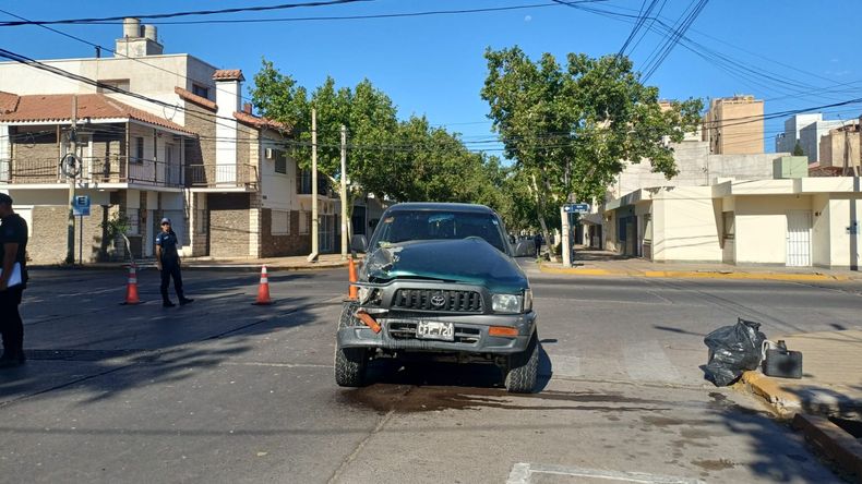 Un fuerte accidente de tránsito alteró la tarde de este sábado en pleno centro. El siniestro ocurrió alrededor de las 16:50 horas, en la esquina de Salta y Santa Fe, y fue protagonizado por una camioneta Toyota Hilux y un colectivo.